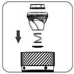 Sæt komponenterne tilbage i den rigtige rækkefølge: nederste lejedæksel (den konvekse side, der vender mod lejet), fjeder, kværn og justeringsknap. |