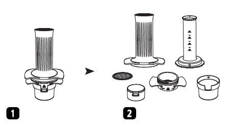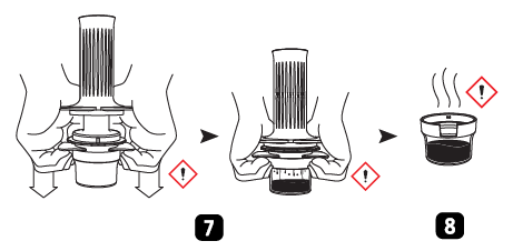 - Skru filterkurven helt ind i kammeret for at forhindre lækage. Saml koppen med filterkurven.