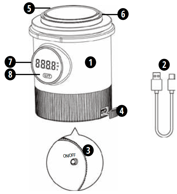 Visningsområde ( Styres af valgmulighedsknappen U/T , når tænd/sluk-knappen er tændt ) | ![]() |