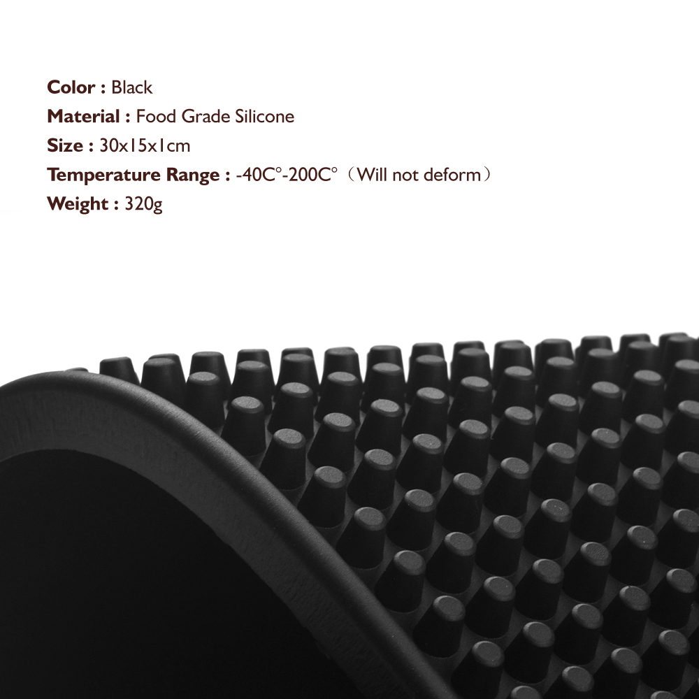 Materiale : silikonegummi. Mål : 30 cm x 15 cm x 1 cm. Vægt : 320g.