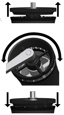 Løft-, drej- og låsejustering af krone