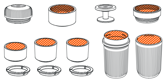 Det er vigtigt at respektere og rengøre din maskine og dens tilbehør regelmæssigt. God vedligeholdelse vil give dig mulighed for at bruge din NanoPresso i mange år. Rengør delene under rindende vand efter hver brug. Lad dem tørre separat.