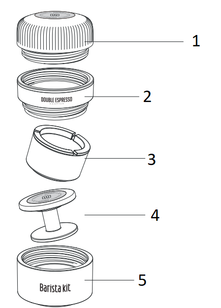 Tilbehøret Barista kit er kun kompatibelt med Nanopresso. Barista kit er beregnet til personlig brug. Det er ikke egnet til kommerciel, professionel, kollektiv eller industriel brug.