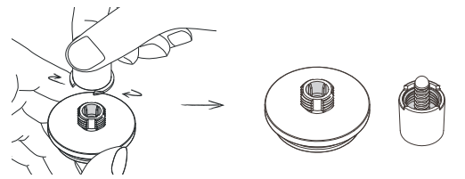 3. Fjern den lille sorte silikonedel, der sidder inde i den lange fjeder. Saml dysen igen. Pas på ikke at miste den lille sorte del.
