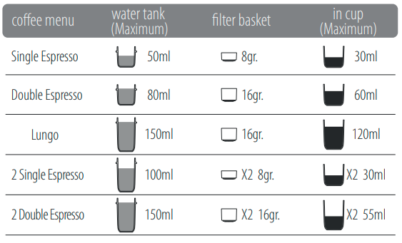 3. Skru Portafilter ind i den dobbelte espressoadapterring. 4. Tilsæt kaffegrumsen (16 g) i filterkurven. Brug Tamper til at jævne og komprimere espressokværnet. | ![]() |