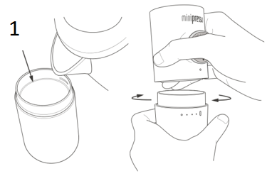 - Rengør MiniPresso-sættet omhyggeligt og regelmæssigt efter hver brug.