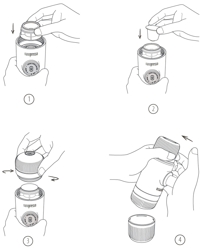 - Placer kapselholderen i Nanopressoen.